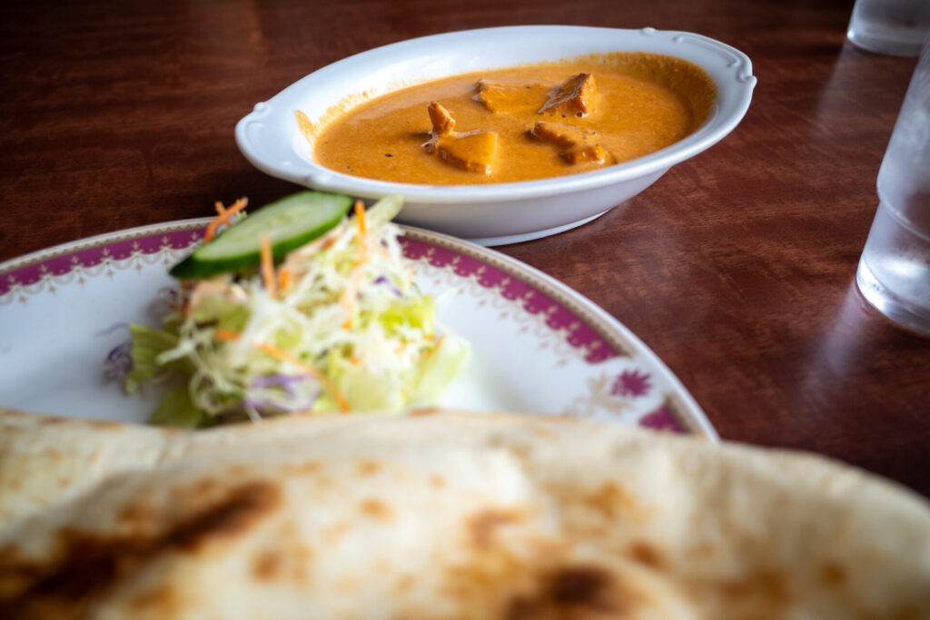 ふくらんだナンの弾力、焼き目の香ばしさ、トマトと生クリームのコク、タンドールの香り——それらが口の中で層をつくる。