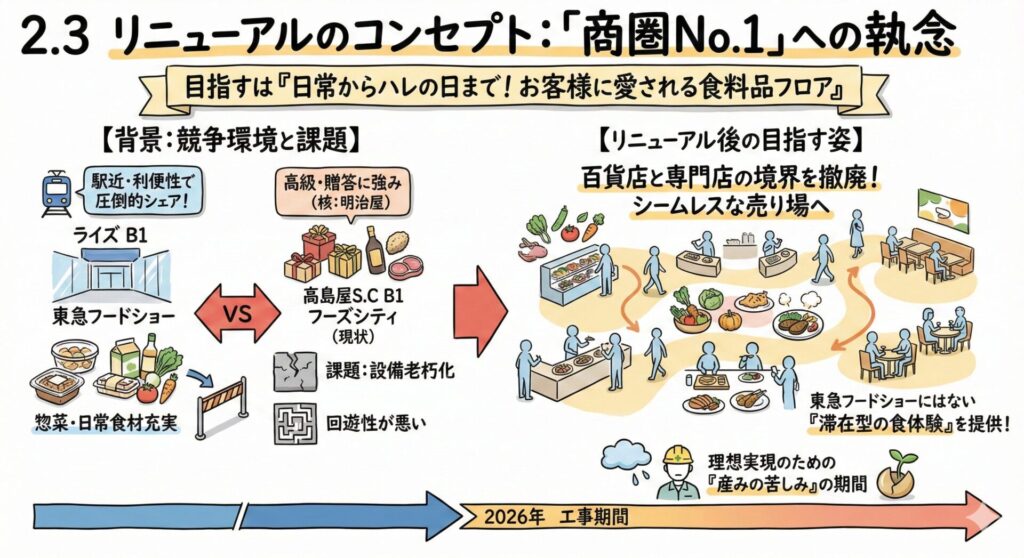 依頼者様が最も注視されている玉川高島屋S.C本館地下1階(通称:フーズシティ)の改装計画について、判明している全ての事実と、そこから読み取れる戦略的意図を詳述する。
