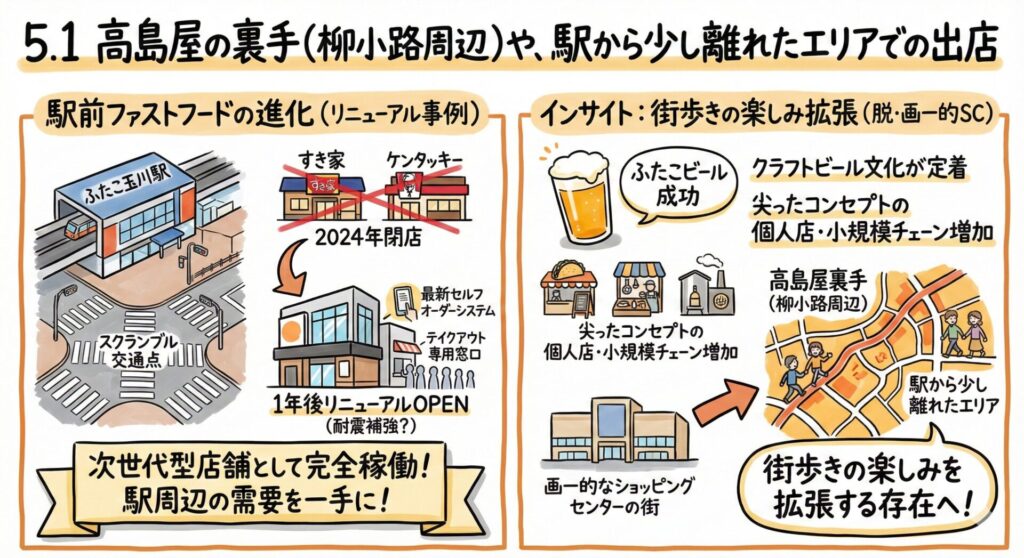 5.1 高島屋の裏手(柳小路周辺)や、駅から少し離れたエリアでの出店