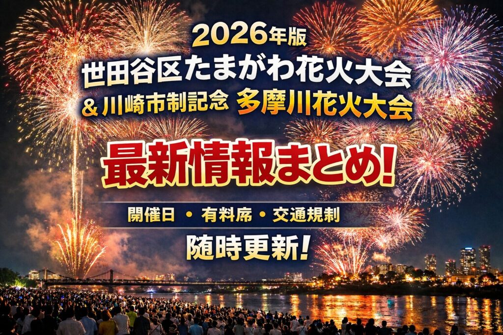 【2026年版】世田谷区たまがわ花火大会&川崎市制記念 多摩川花火大会|二子玉川の最新情報まとめ(随時更新)