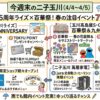 今週末の二子玉川は、「ライズで無料配布&街歩き」、「蔦屋家電でPOP-UPや体験会」、「高島屋で食とファミリー向け催事」という流れで回ると、かなり満足度の高い週末になりそうです。ゲーム好きなら蔦屋家電の「PlayStation™ POP UP STORE」、静かに楽しみたいなら紀伊國屋書店 玉川高島屋店の「アンティークプリント展」も候補に入ります。春らしい空気のなか、気になるスポットを2〜3か所はしごしてみてはいかがでしょうか。