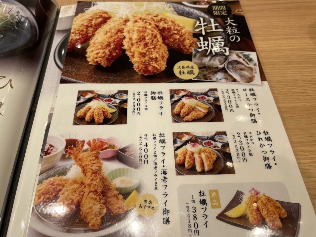 牡蠣フライひれかつ御膳と、数量限定上ロースかつ御膳に決めた!